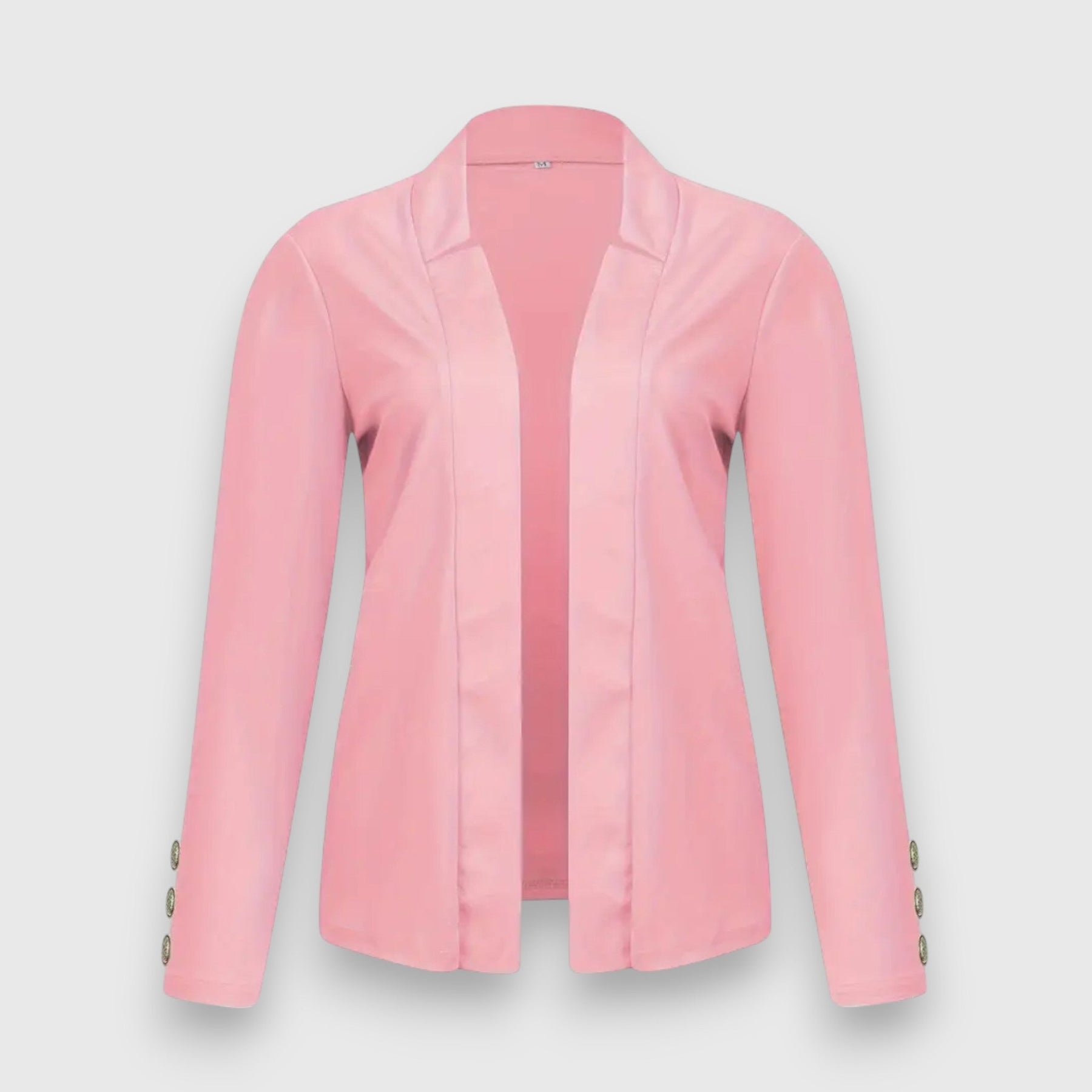 The Aria blazer combines understated elegance with professional style. Its open design with a single button front gives it a modern touch, while the long sleeves and high-quality workmanship ensure optimal comfort. Whether for a formal or casual look, this blazer is a timeless classic for any wardrobe.